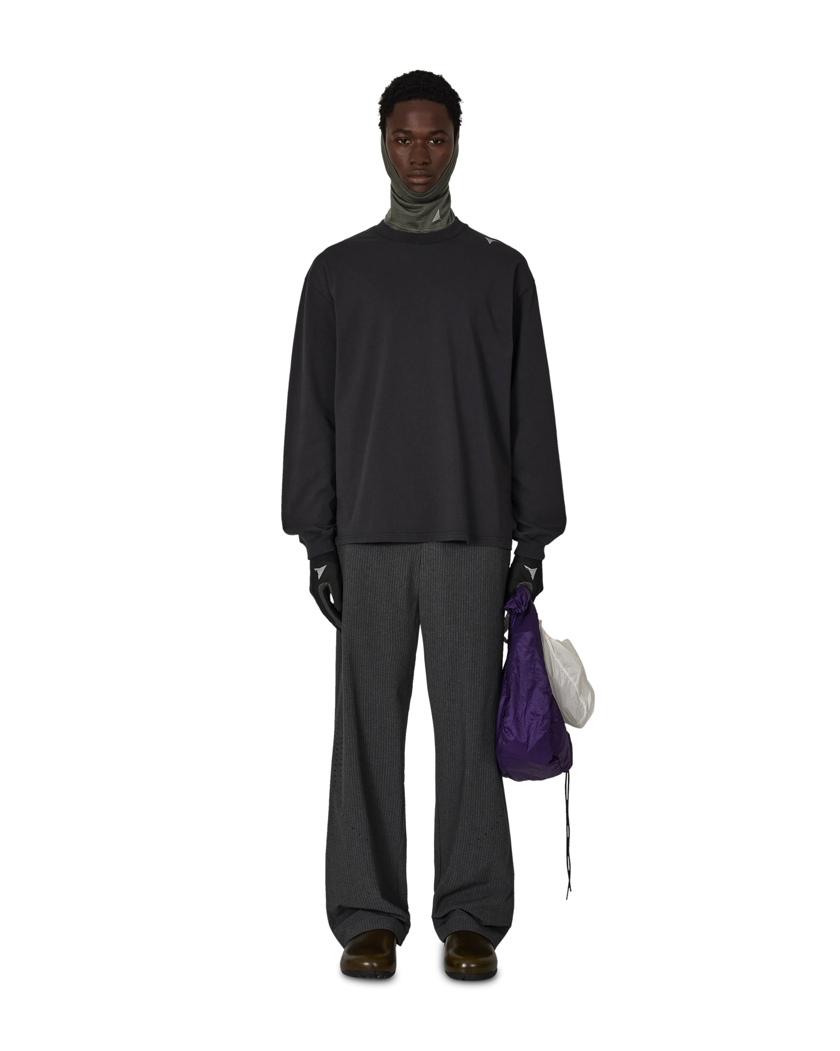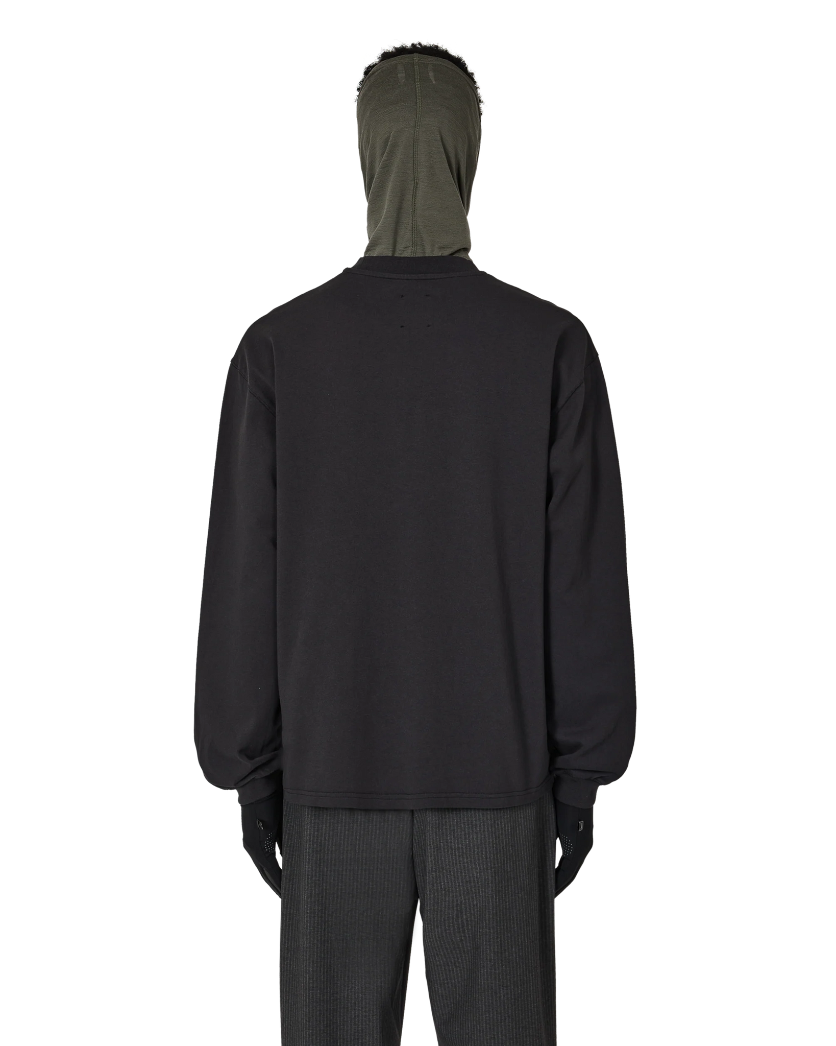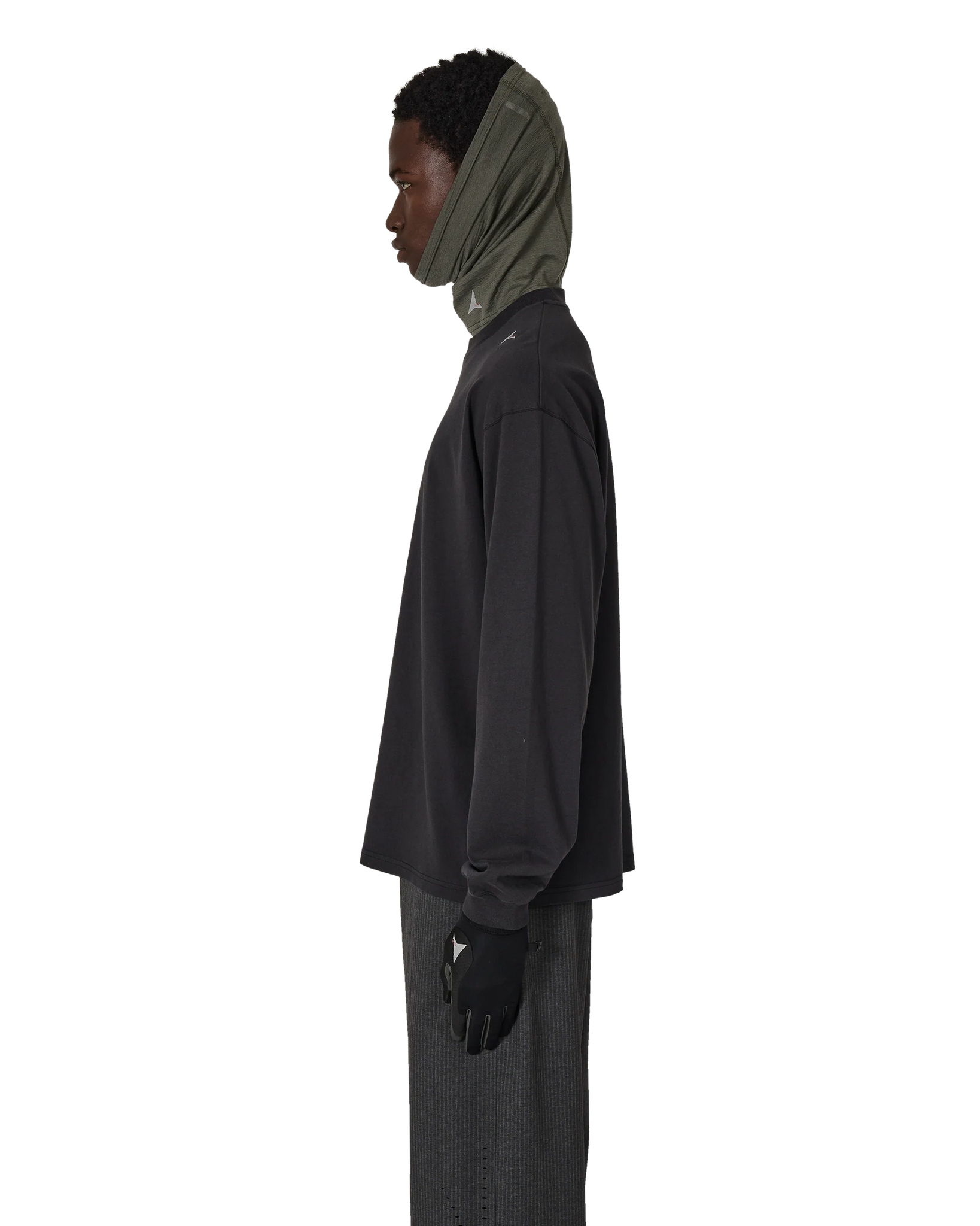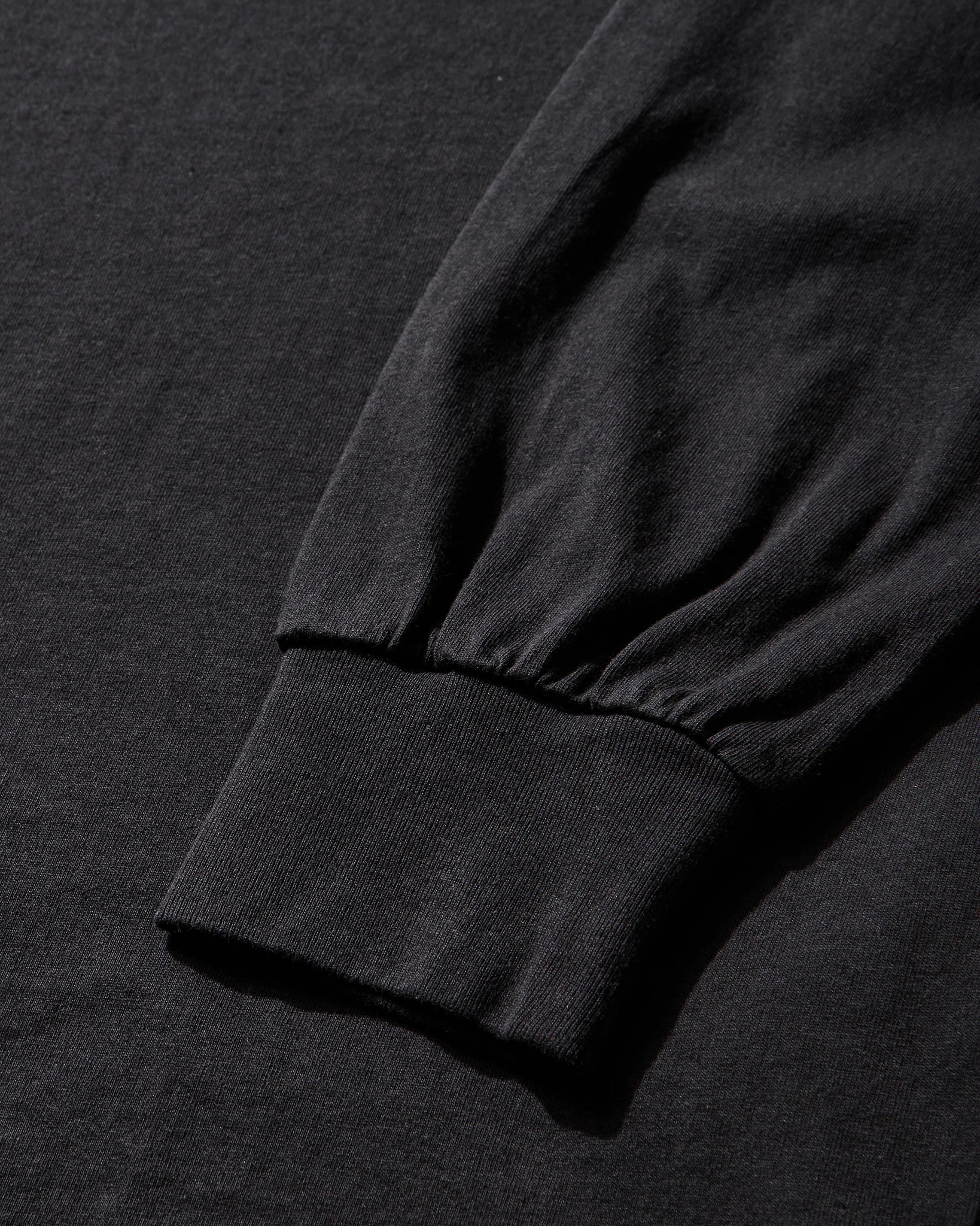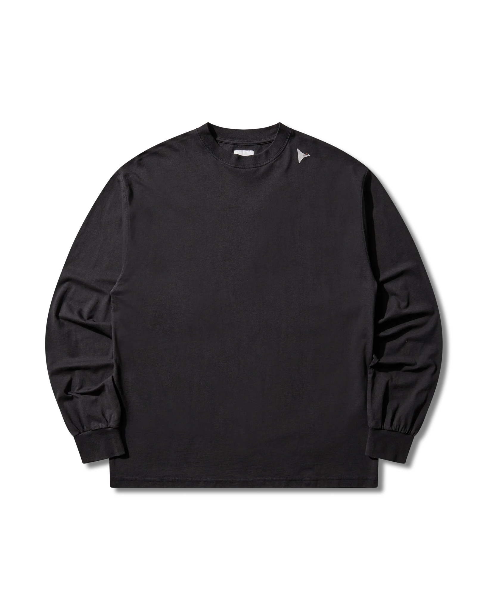Long sleeve tee made of a lightweight, organic cotton jersey, washed black color. Embroidered, contrasting logo on the left shoulder. Ribbed collar and cuffs. Loose fit.