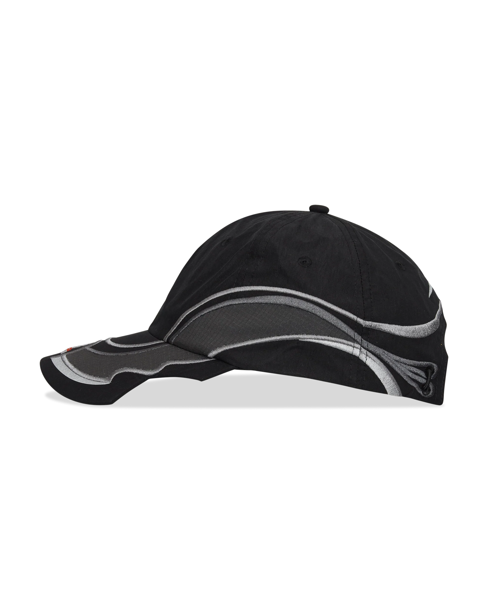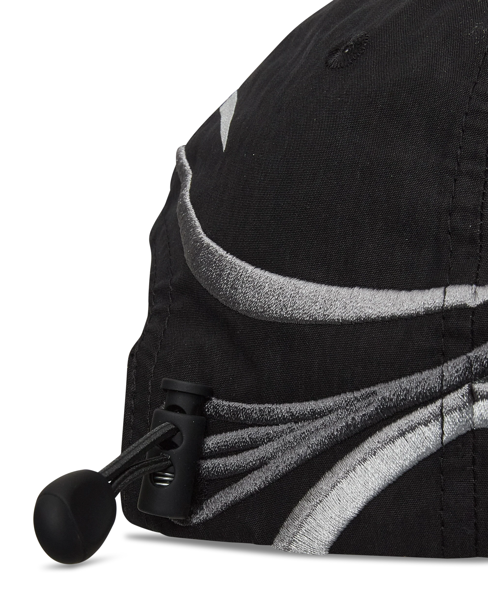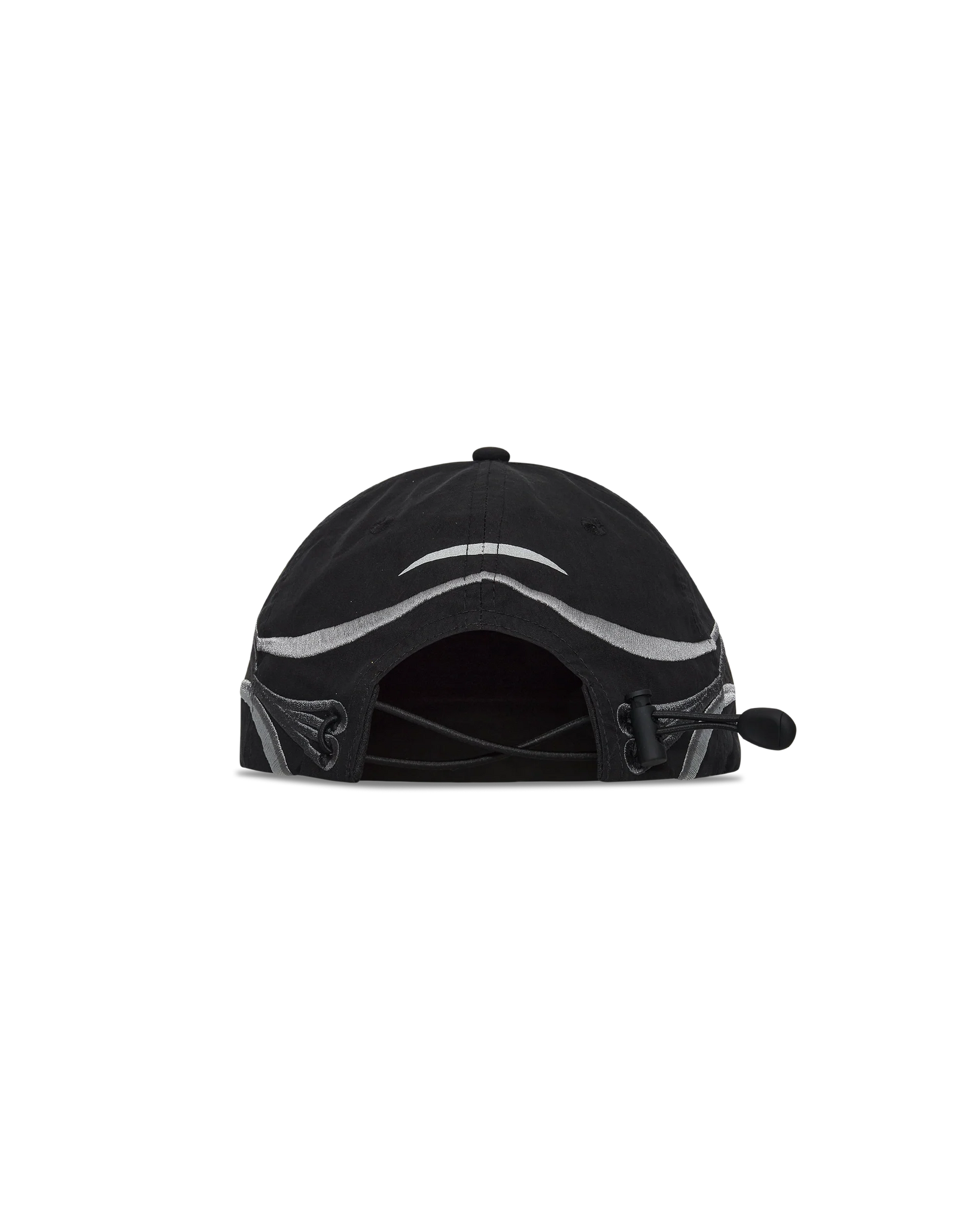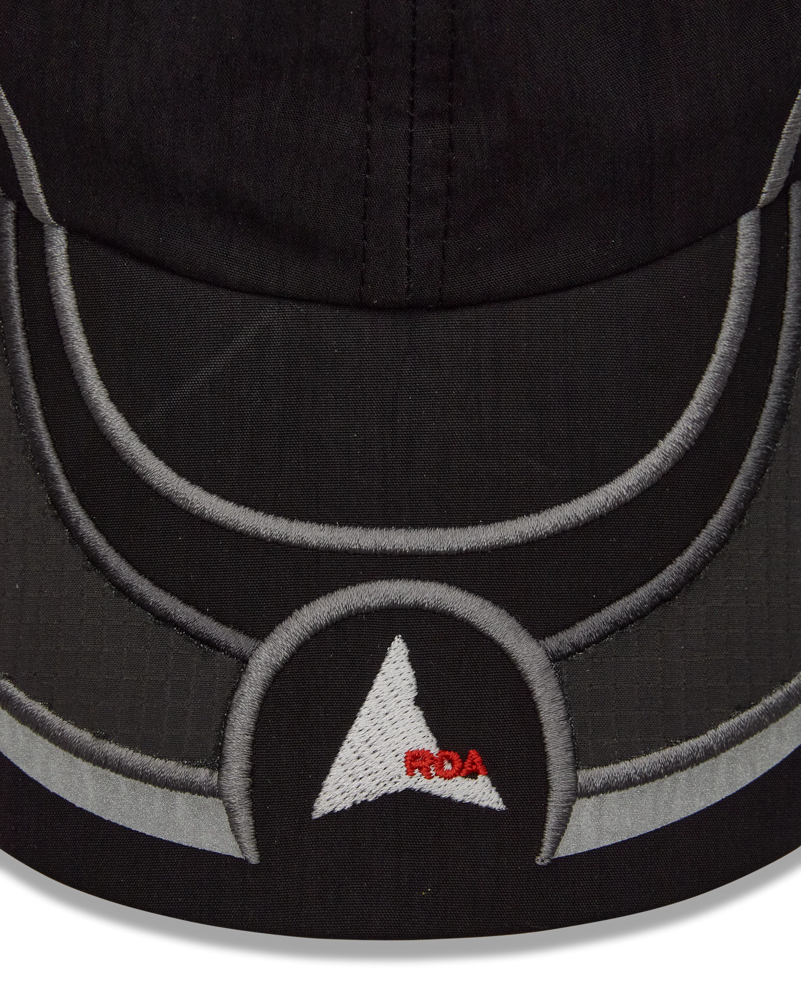 The Pursuit 6-Panel Cap in black color is a lightweight headwear piece constructed from a crisp nylon-cotton blend. It features a structured 6-panel design with a shaped visor, tailored to accommodate sunglasses. Reflective detailing and an embroidered graphic enhance visibility, while an adjustable back cord ensures a secure fit. Finished with an embroidered ROA logo on the visor.